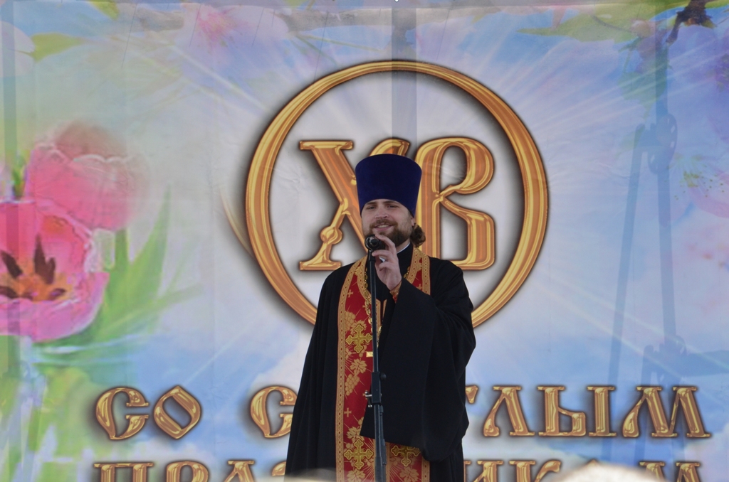 Затем отец Дмитрий зачитал поздравление от имени митрополита Владивостокского и Приморского Вениамина, провел молебен и благословил собравшихся,окропив их святой водой. Все желающие смогли взять с собой яйца, специально для этой цели освященные в храме.