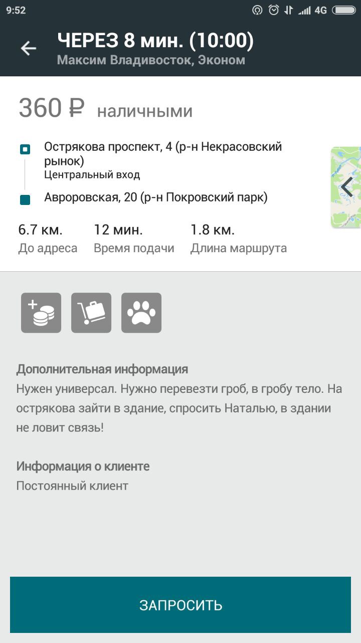 Инцидент произошел накануне утром. В таксомоторную компанию города поступила необычная заявка: в сообщении говорилось, что заказчику требуется авто-универсал для гроба, внутри которого лежит тело. Кроме того, водителю необходимо будет подъехать на указанный адрес, зайти в здание и спросить Наталью, так как связь в здании отсутствует и, видимо, дозвониться до Натальи не представляется возможным.