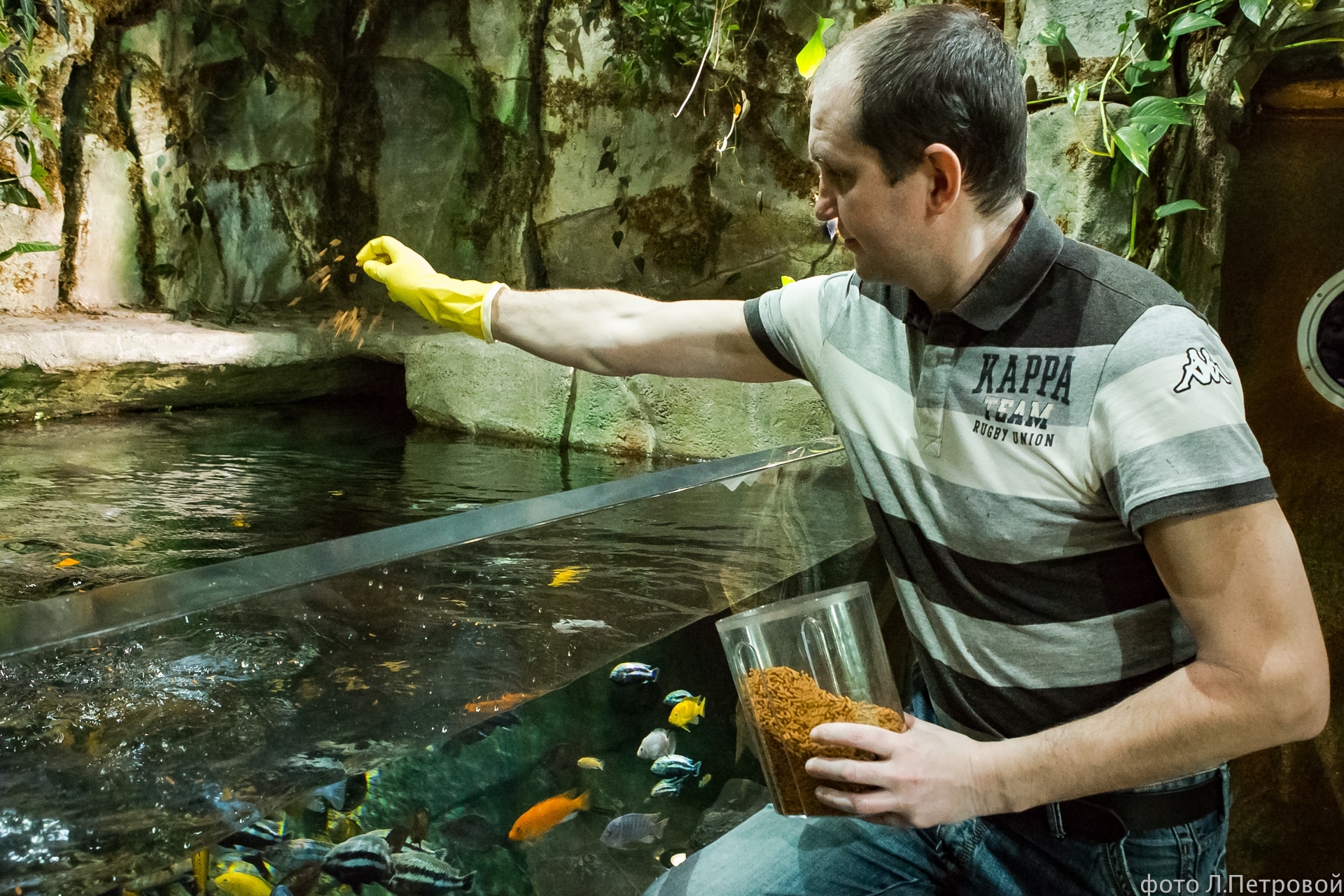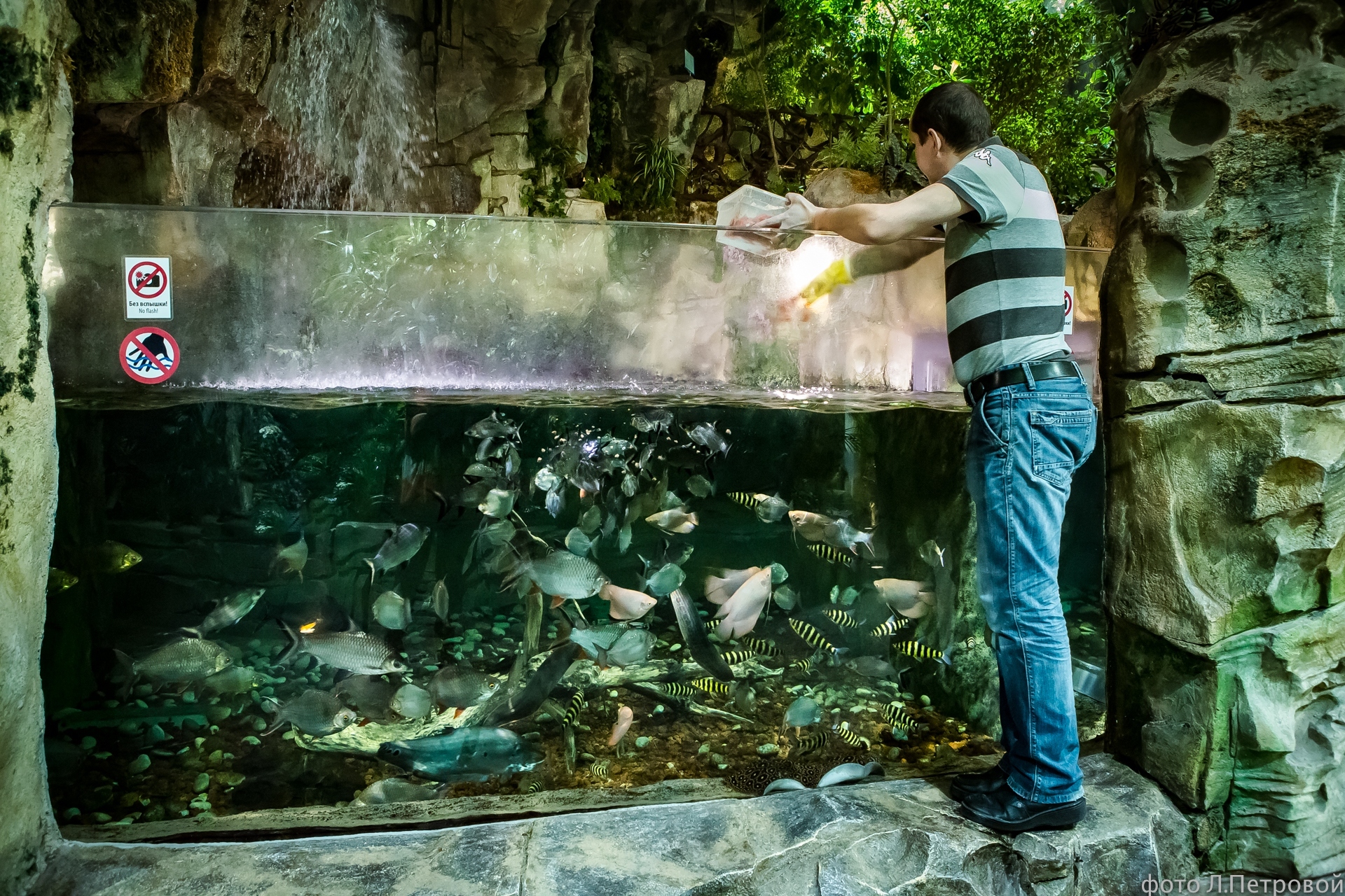 «По сути паку – хищник, - говорит сотрудник отдела содержания пресноводных тропических гидробионтов Ксения Безбородова. - А значит, мог бы начать охотиться на соседей. Но этого не происходит. Мы кормим всех обитателей этого аквариума мелкими кусочками кеты, гребешком и добавляем специальный витаминизированный корм. Несмотря на то, что паку гораздо крупнее остальных, рыбы прекрасно уживаются вместе и даже не ссорятся из-за еды».