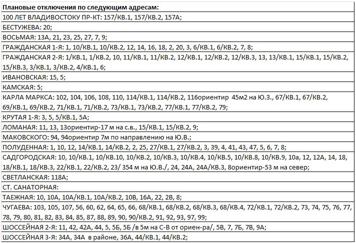 Сегодня, 4 апреля, Владивосток частично останется без электроснабжения, сообщает РИА VladNews со ссылкой на МУПВ "ВПЭС". Причина - плановые работы по ремонту и диагностике электросетей. Длительность каждого отключения от 2-х до 8-ми часов.
