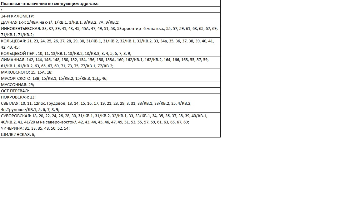 Причина - плановые работы по ремонту и диагностике электросетей. Длительность каждого отключения от 2-х до 8-ми часов.