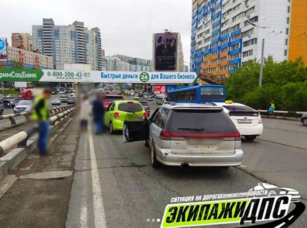 Во Владивостоке на Некрасовском путепроводе произошло массовое ДТП, сообщает РИА VladNews со ссылкой на dps_vl.