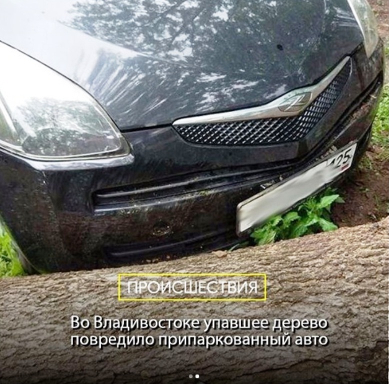 Во Владивостоке в районе дома по улице Кутузова, 6 на припаркованный автомобиль упало дерево, сообщает РИА VladNews со ссылкой на dps__control. Это произошло из-за порыва ветра. К счастью, в момент происшествия в автомобиле не было людей.