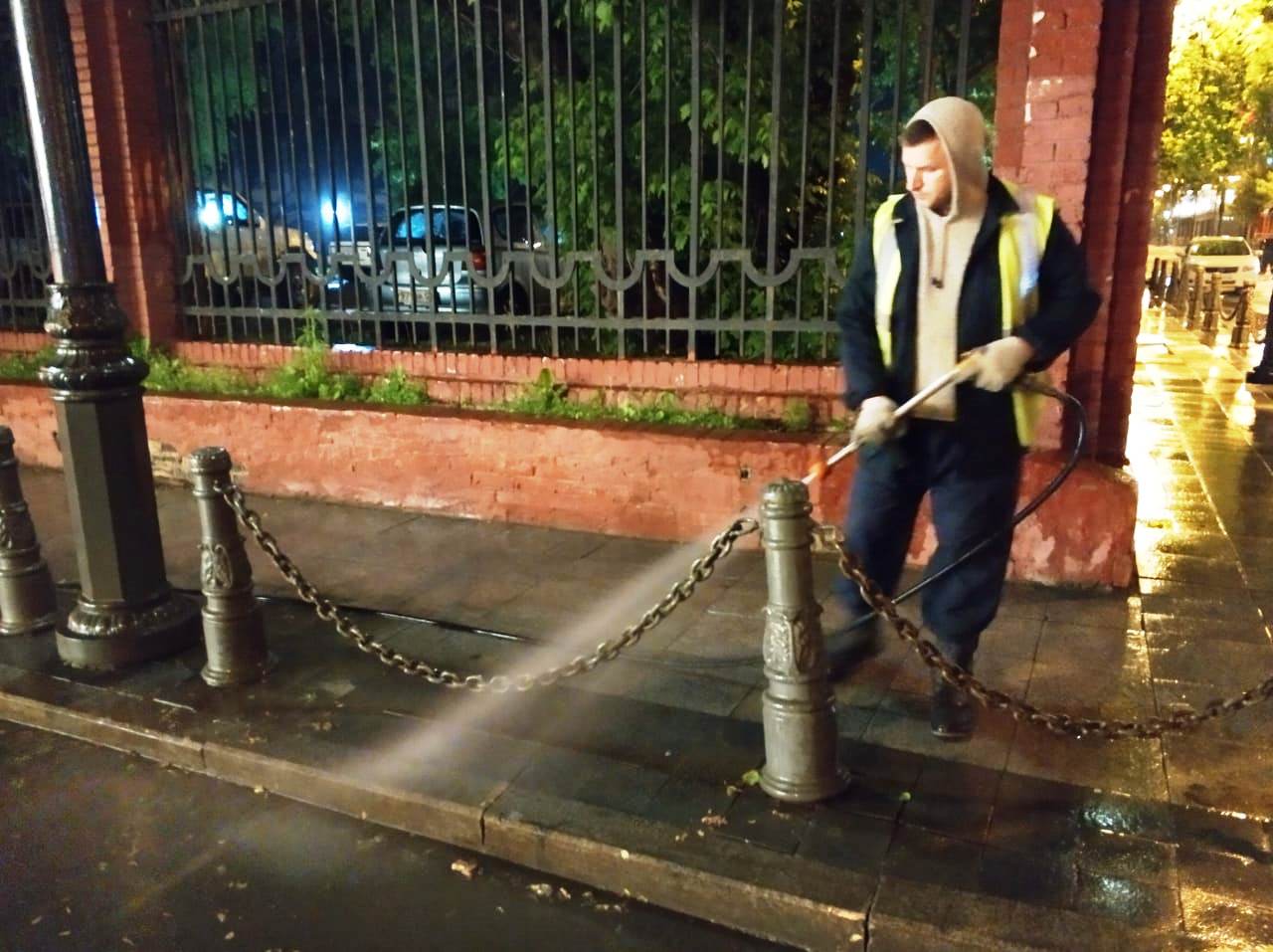 По ночам во Владивостоке моют тротуары, дороги и остановки общественного транспорта, чинят инженерные решетки и люки, леера и светофоры, латают дороги в рамках аварийно-восстановительного ремонта, наносят разметку.