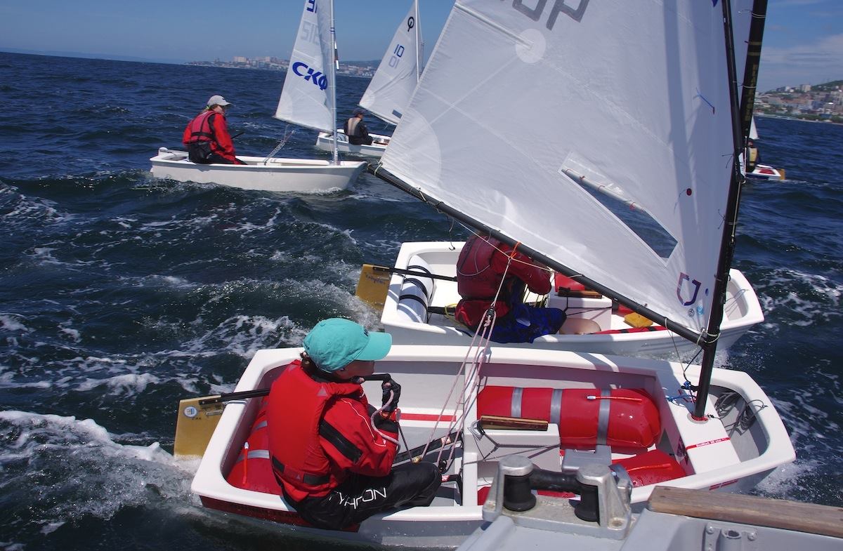 Алина Петрова из Холмска также завершает гонки в числе первых. Традиционно подготовка владивостокских ребят отличается своим умением управлять швертботом при сильном ветре. В этом году заметно подтянулись младшие «оптимистчики» Василиса Арестова, Ярослав Ольховский, Маша Шилакина.