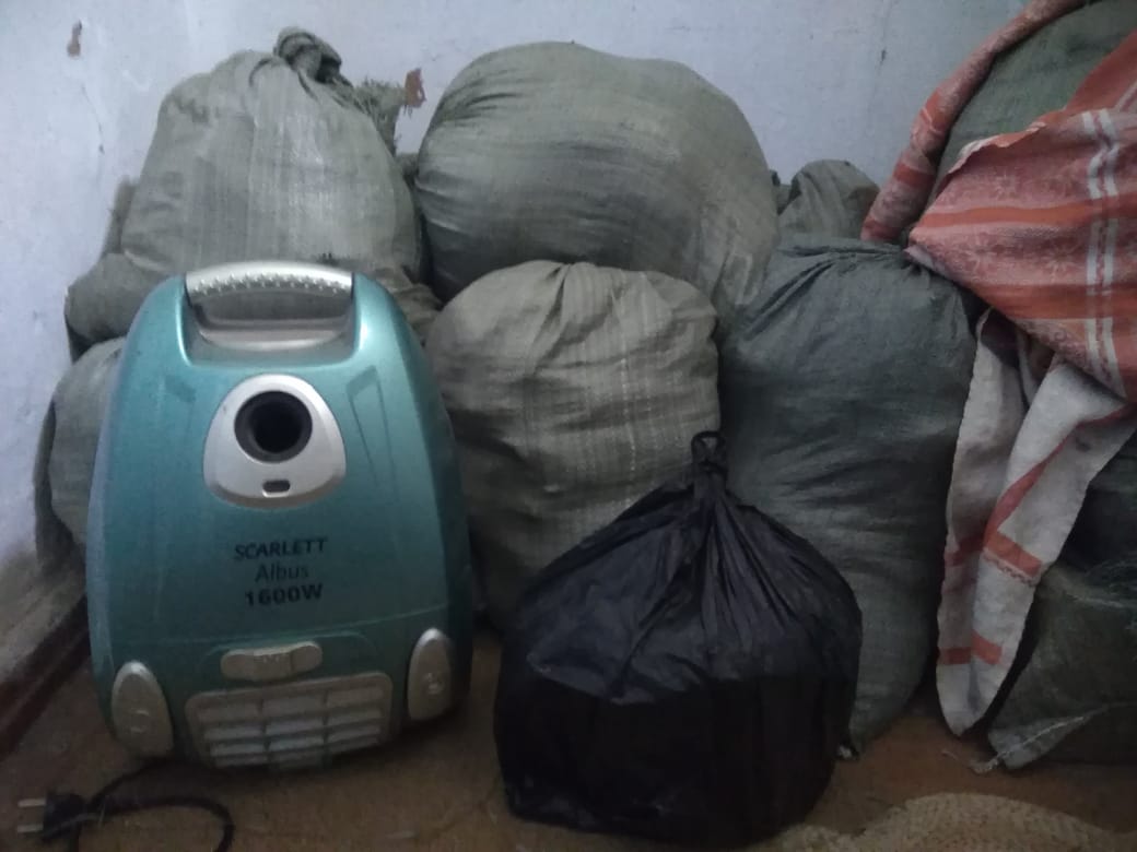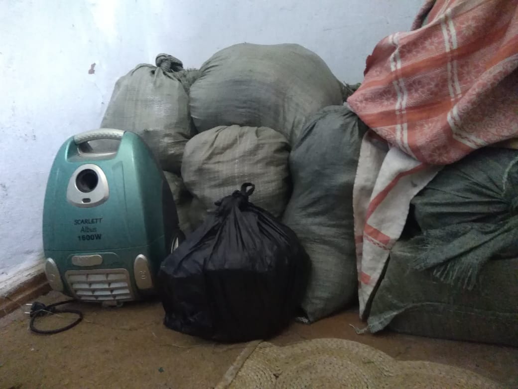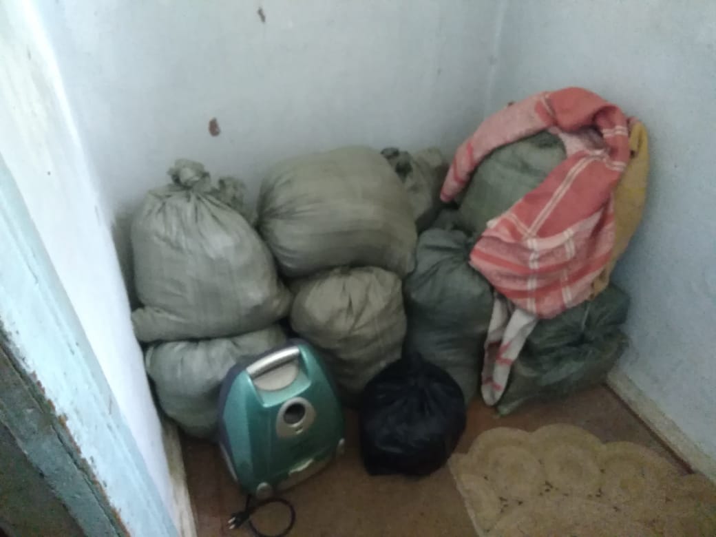 Однако, как оказалось на месте, вещи внучки все-таки у почти 100-летней бабушки в ванной стоят. Их оказалось не три мешочка, и они занимают место, на котором должна быть ванна:
