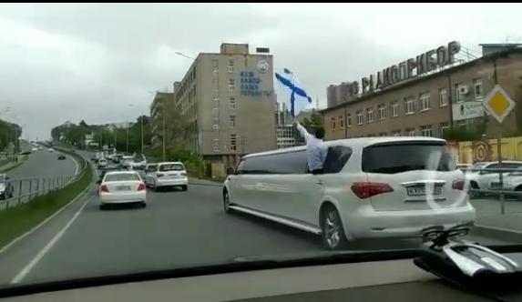 Выпускники ТОВВМУ имени Макарова на лимузинах смутили часть жителей Владивостока, сообщает РИА VladNews со ссылкой на dps_control. Восемь лимузинов с Андреевскими флагами были замечены накануне на улице Калинина.