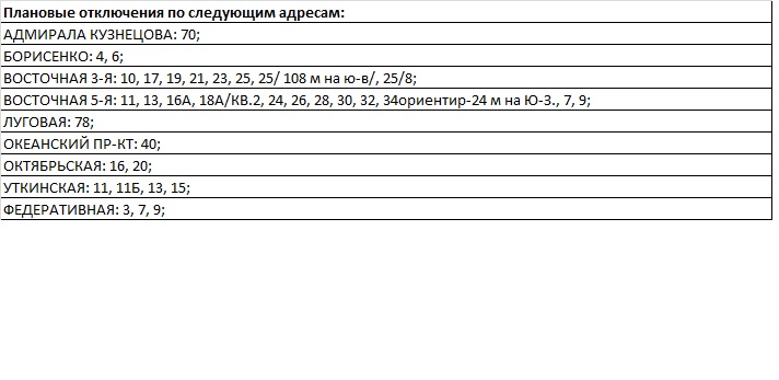 Во Владивостоке 27 июня сотрудники МУПВ «ВПЭС» (электрические сети) проведут плановые ремонтные работы, сообщает РИА VladNews со ссылкой на МУПВ «ВПЭС».