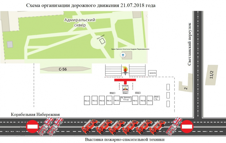Движение будет перекрыто от перекрёстка Светланского переулка и улицы Корабельная Набережная до дома № 4 по улице Корабельная Набережная.