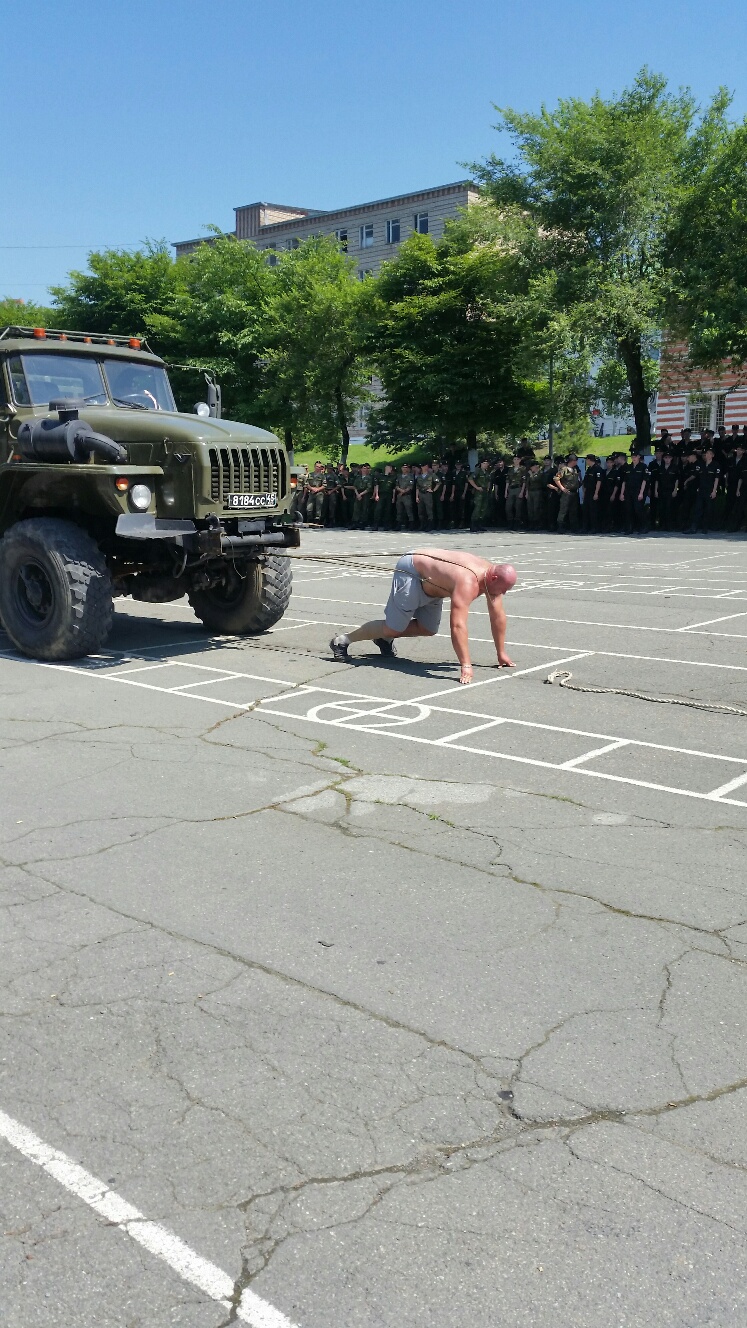 Во Владивостоке 22 июля приморский силач Иван Савкин сдвинул грузовой автомобиль "Урал" в честь предстоящего праздника военно-морского флота, сообщает РИА VladNews.