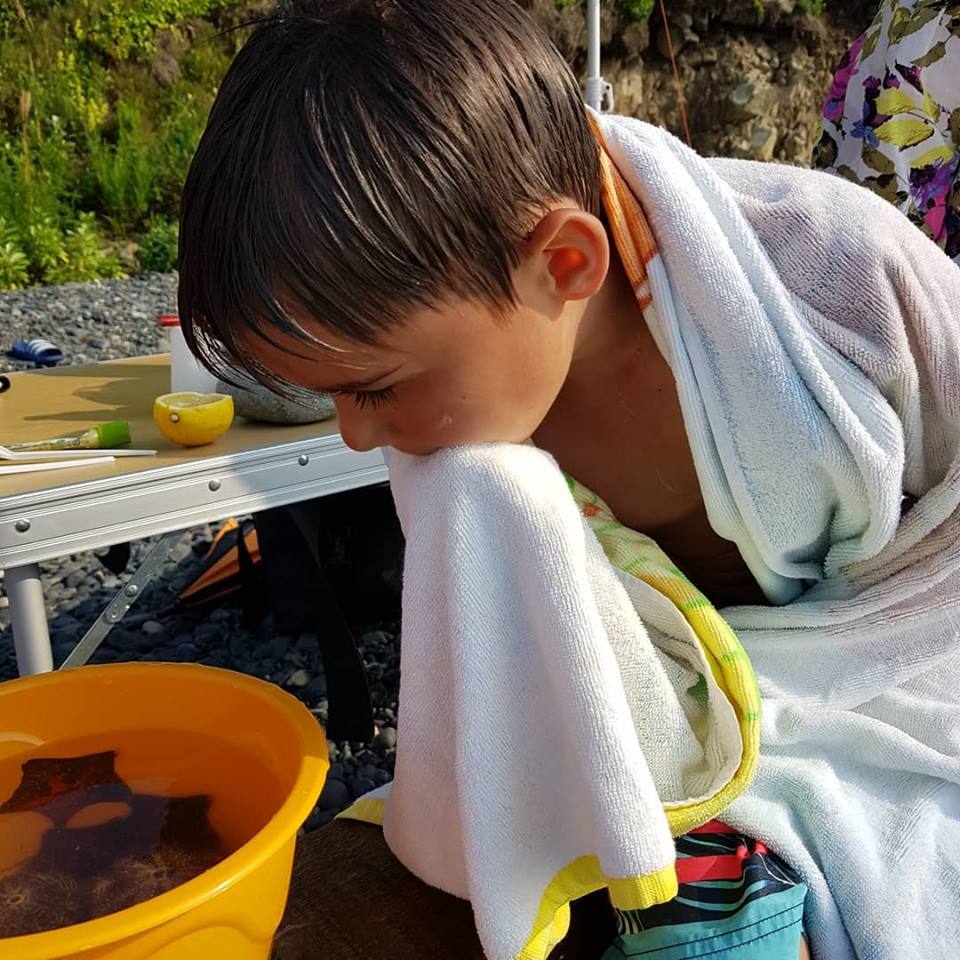 Судя по фотографиям, отдых действительно получился насыщенным: прогулка на катере, пикник, добыча морских обителей и игры с детьми на берегу.