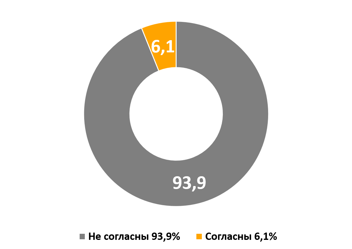 Больше всего граждане не согласны с тем, что новые изменения увеличат размер пенсий. С этим аргументом не согласились 93,9% респондентов. На рост пенсии рассчитывают 6,1%(см. Рисунок 2).