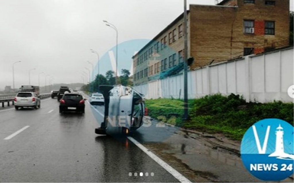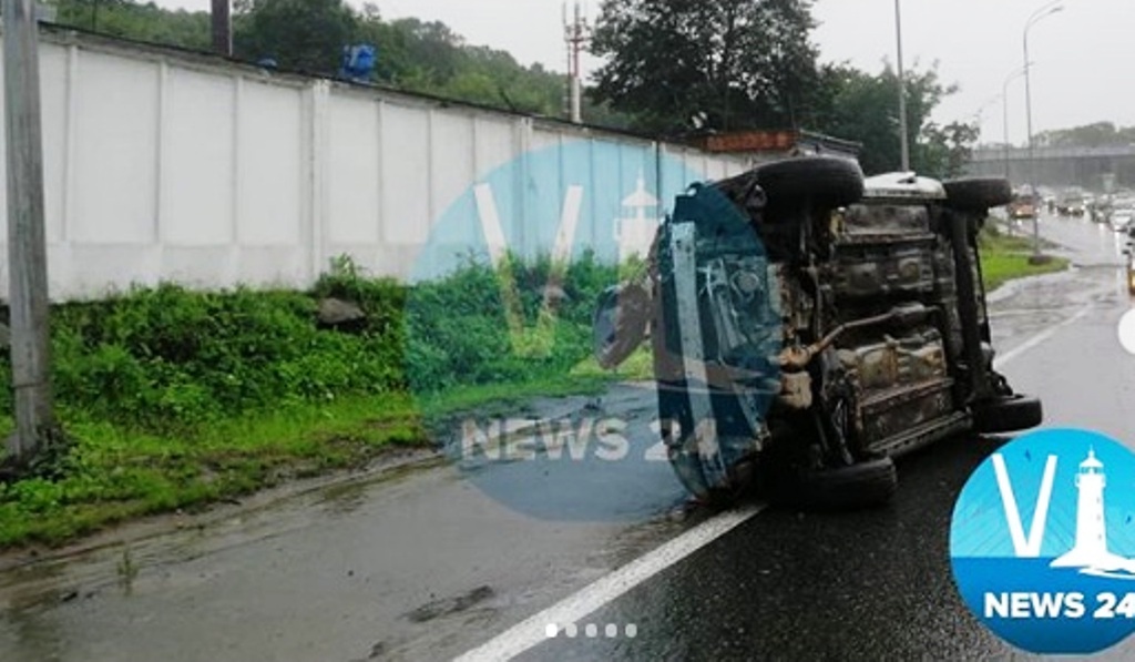 Во Владивостоке перевернулся автомобиль такси на мокрой дороге, сообщает РИА VladNews со ссылкой на vlnews24.