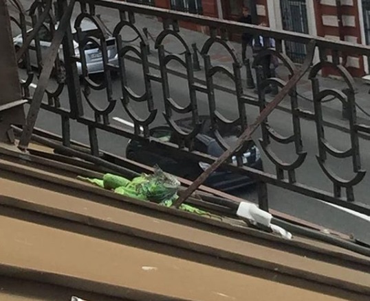Владивостокцы заметили зеленую игуану, бродящую прямо по крыше здания, как пресмыкающееся туда попало - неизвестно.