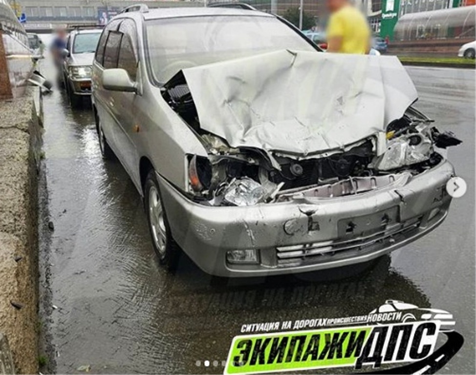 Как сообщают очевидцы, автомобиль Toyota Gaia совершил столкновение с джипом , которого отбросила на Nissan Terrano.