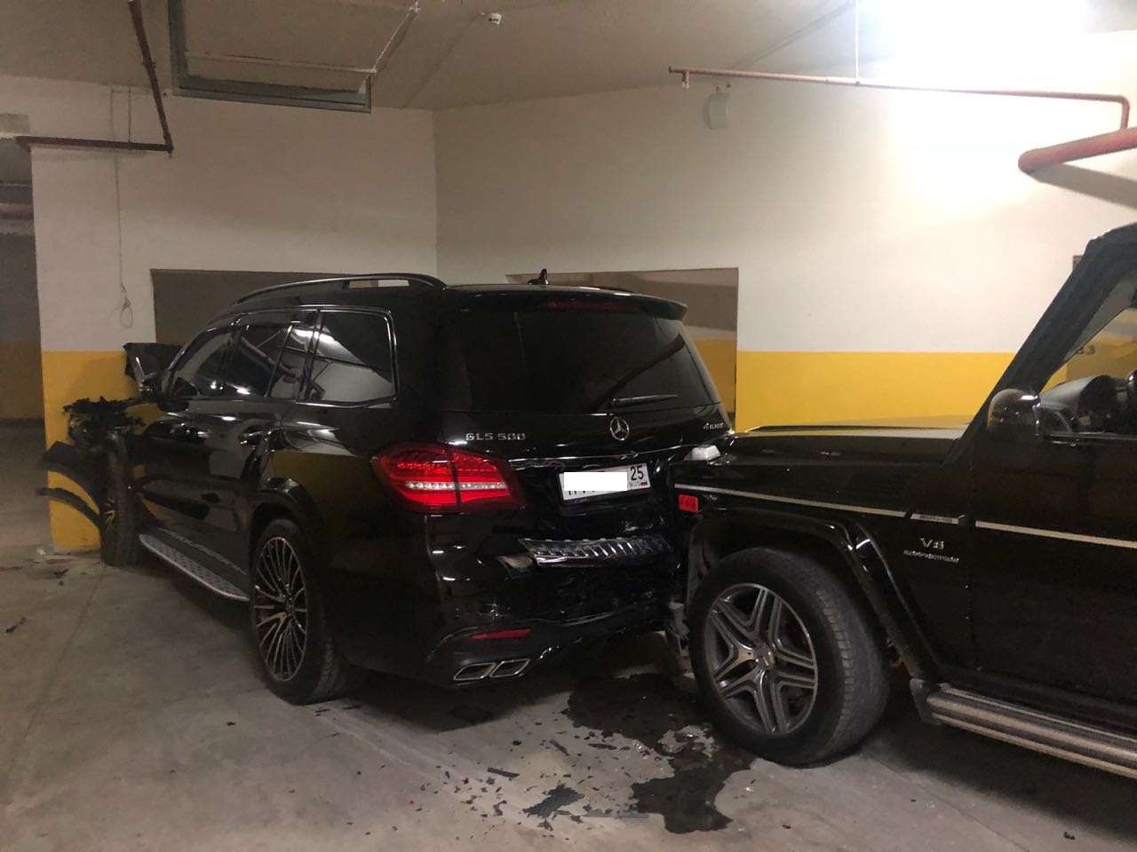 Автомобиль марки Mercedes Gelandewagen въехал в заднюю часть Mercedes GLS 500. Стоимость обоих автомобилей начинается от восьми миллионов рублей.