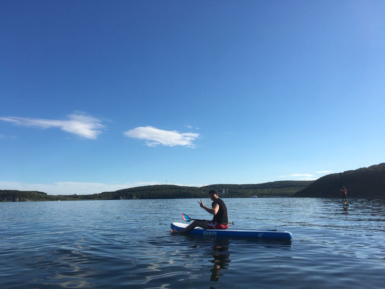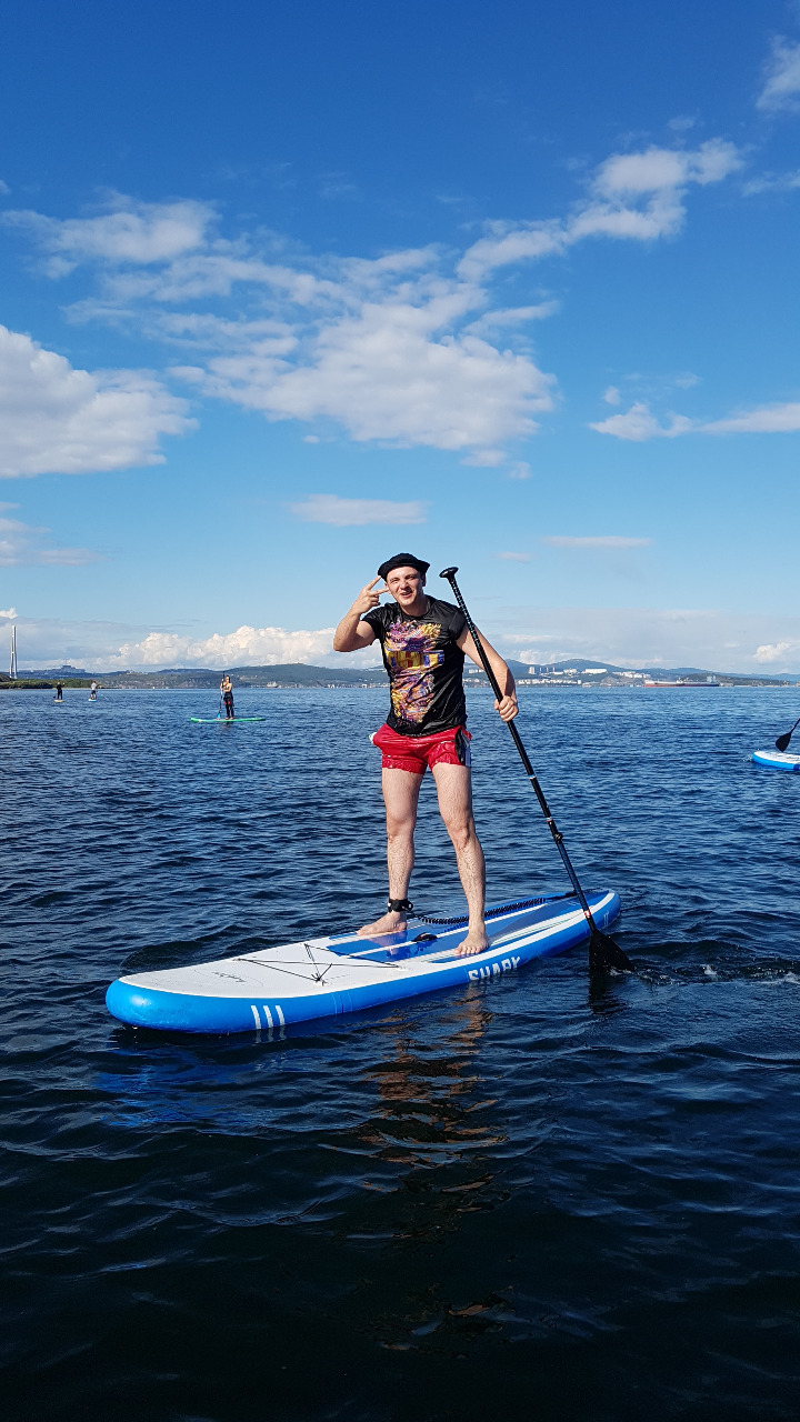 Так как Григорий впервые приехал в Приморье, то любоваться красотами природы ему предложили из необычного ракурса – из моря, а именно во время прогулки на SUP-сёрфинге.