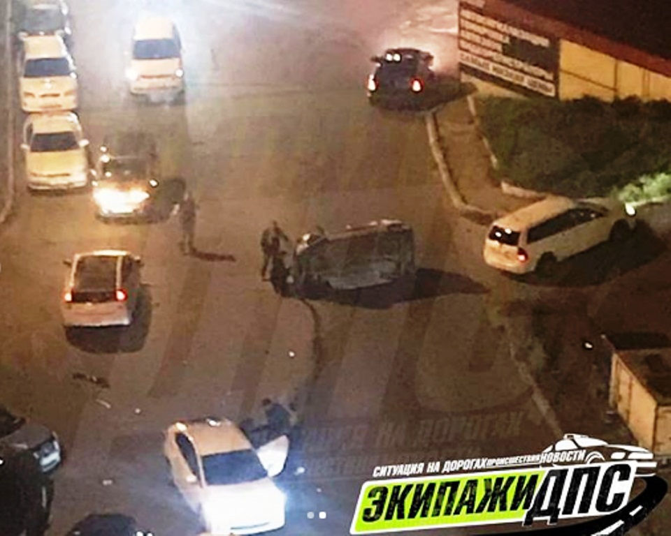 В результате столкновения один автомобиль совершил опрокидывание на проезжую часть.