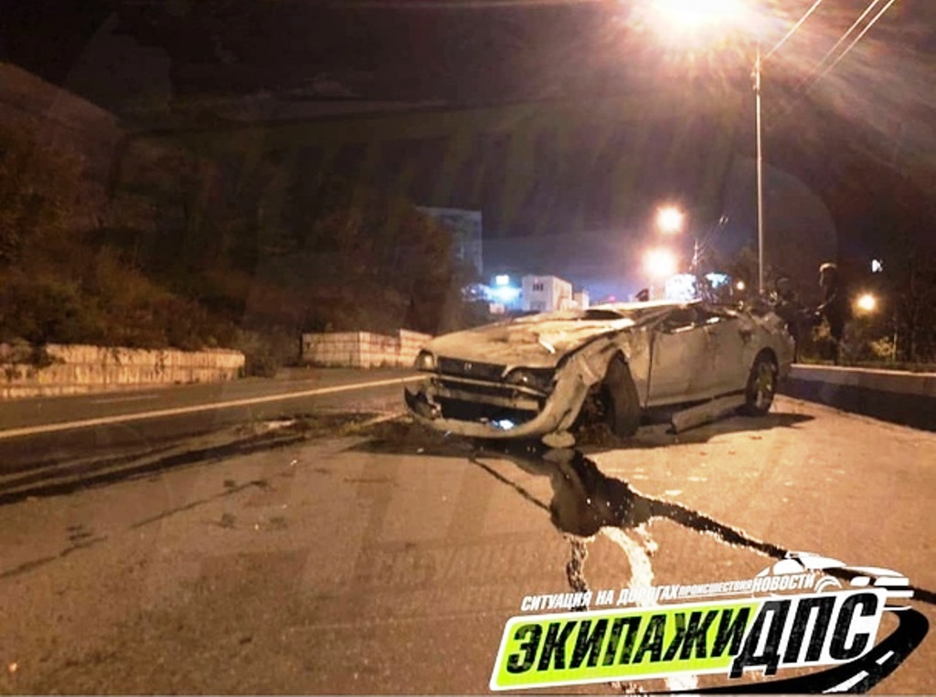Как сообщают очевидцы, юные гонщики на автомобиле Toyota Mark II, находившиеся в состоянии алкогольного опьянения, не справились с управлением и совершили столкновение с бетонным блоком. После этого седан совершил множество опрокидываний, после чего приземлился на колёса.