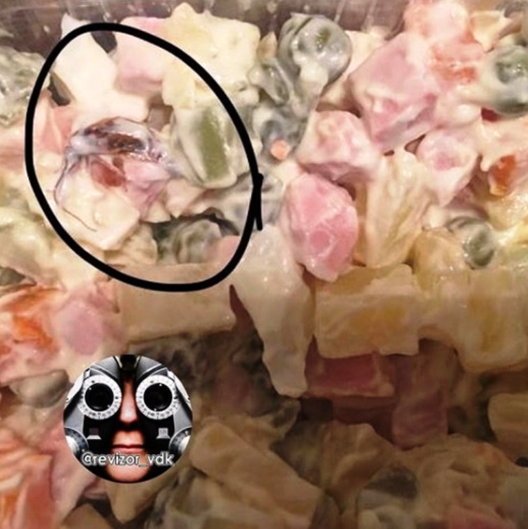 Но мужчину ждал новый неприятный «сюрприз» в салате «Оливье». Так, во время ужина в блюде он увидел таракана.