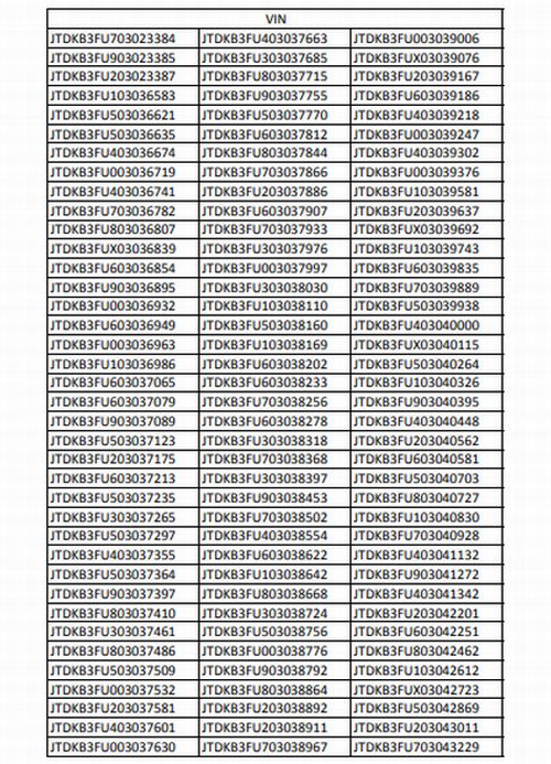 Отзыву подлежат автомобили, произведенные с 1 августа 2016 года по 8 мая 2018 года, с VIN-кодами согласно приложению ниже. Причиной отзыва стало то, что на автомобилях Toyota Prius была выявлена вероятность контакта жгута электропроводки гибридной установки и крышки электропроводки. При попадании пыли между жгутом электропроводки и крышкой электропроводки в месте подсоединения жгута к блоку управления гибридной установкой возможно нарушение изоляции проводки с ее дальнейшим перегревом и возгоранием.