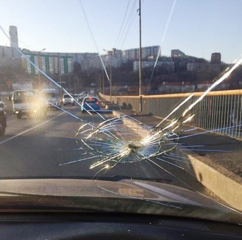 Так, один автолюбитель рассказал, что во время движения по мосту ему от грузовика отлетел камень в лобовое стекло. Водитель обратился к другим участникам движения, предупредив об осторожности.