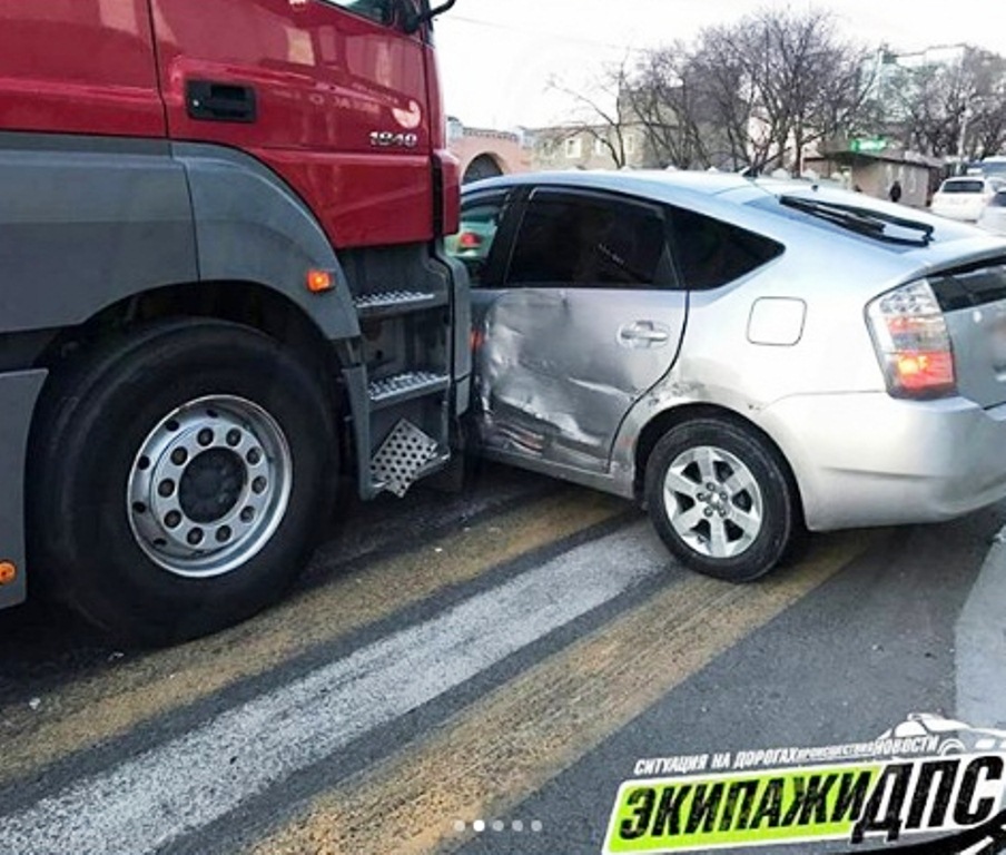 В центре Владивостока произошло ДТП с участием фуры и иномарки, сообщает РИА VladNews со ссылкой на dps_vl.