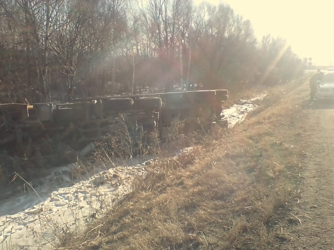 Как сообщил корреспонденту агентства водитель грузовика, во время движения по трассе Осиновка - Рудная Пристань, у лесовоза лопнуло колесо, отчего огромный автопоезд стал вилять по дороге, и в результате слетел с дорожного полотна в кювет и перевернулся. Сортимент из твердых пород дерева разбросало по кустам.