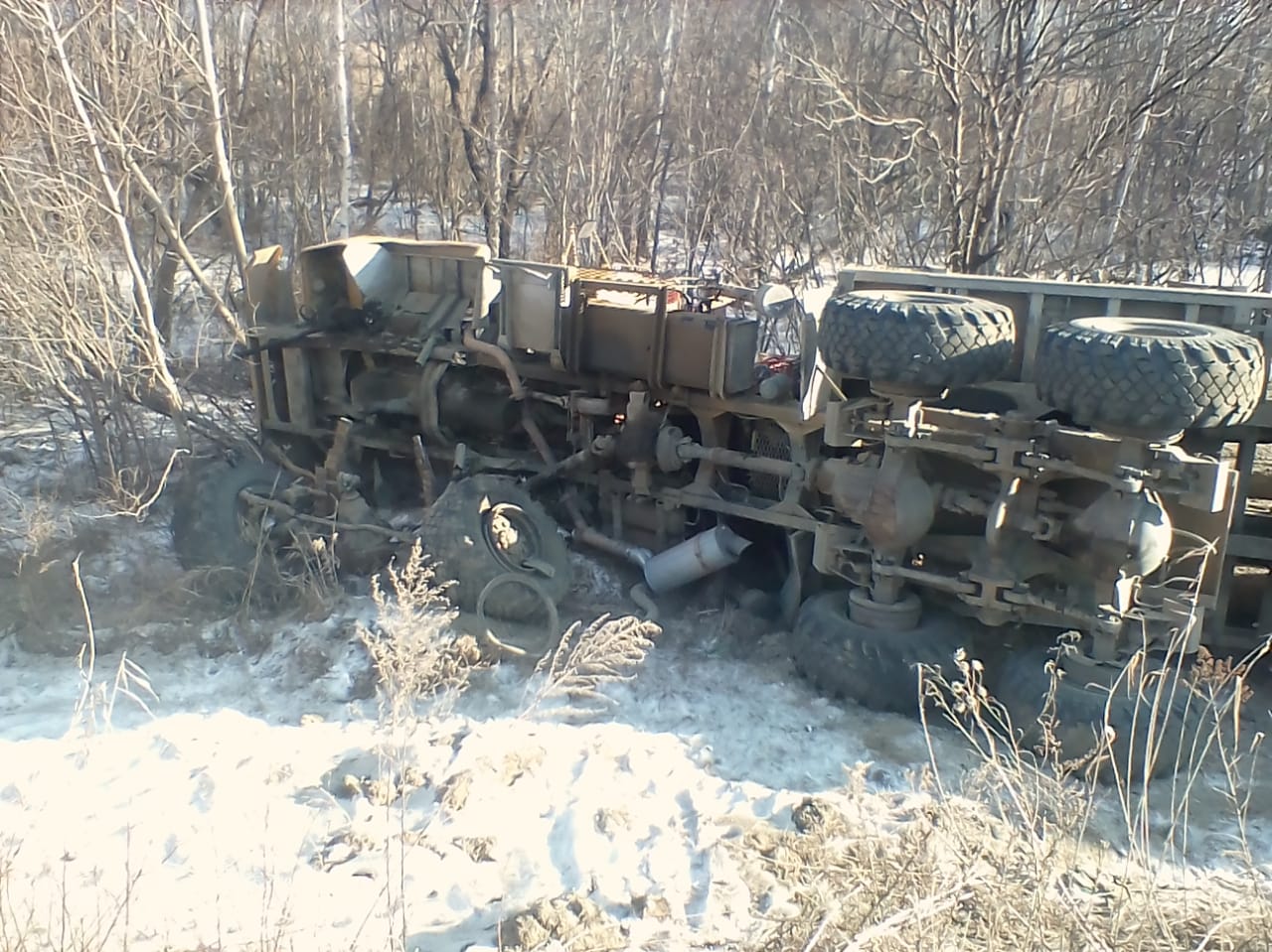 В Анучинском районе огромный лесовоз Nissan Diesel UZA свалился в кювет, сообщает РИА VladNews.