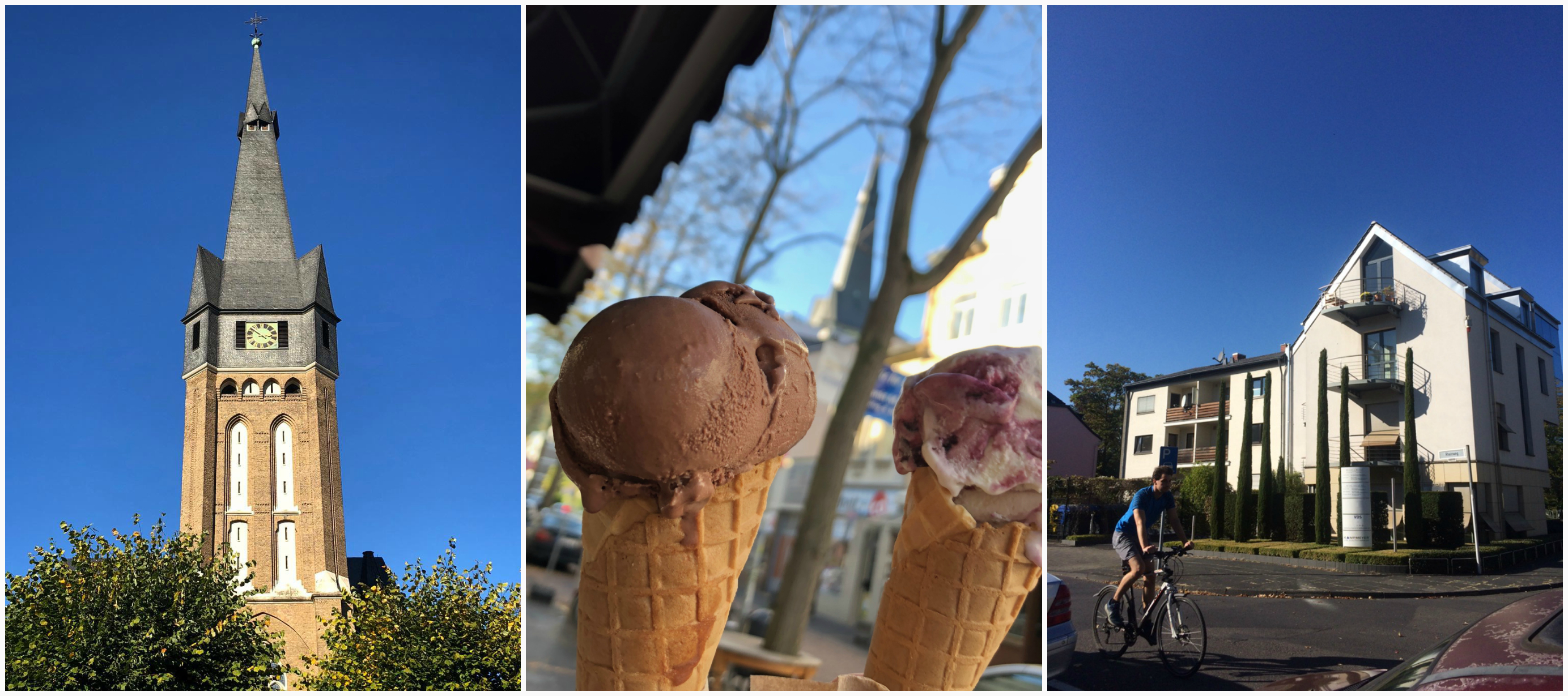 Наша поездка выпала на воскресенье, когда в Германии в буквальном смысле всё «на лопату». Все шоппинг-центры были закрыты, продуктовые магазины и питейные заведения тоже. Исключением в Бонне стало кафе с мороженым и пара маленьких продуктовых магазинчиков, в одном из которых работал русский мужчина.