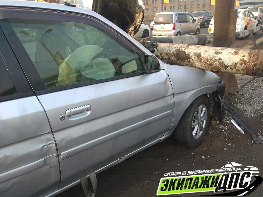По информации очевидцев, перед въездом на Гоголевскую развязку водителя за рулем Mazda Demio «подрезал» другой автомобиль, в результате чего Demio совершил столкновение с леерами.