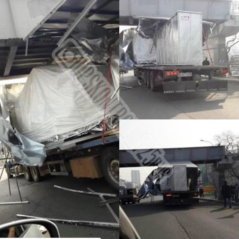 Инцидент произошёл в районе улицы Калинина. Водитель не рассчитал габариты груза и едва не снес надземный переход.
