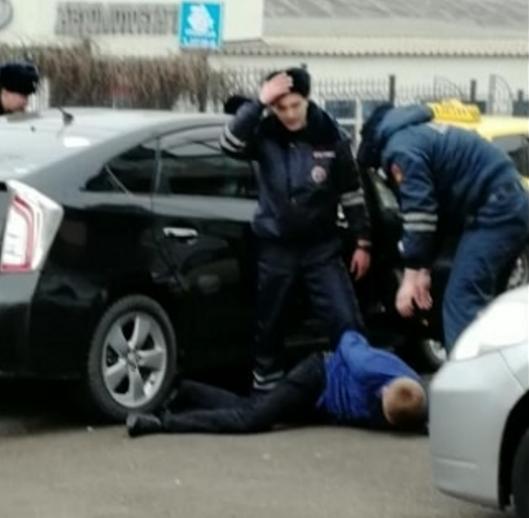 В Сети появилось видео с места происшествия. По предположению интернет-пользователей, водитель автомашины Toyota Prius уехал промывать желудок от содержимого пакетика: граждане сошлись во мнении, что парень "съел" наркотики.