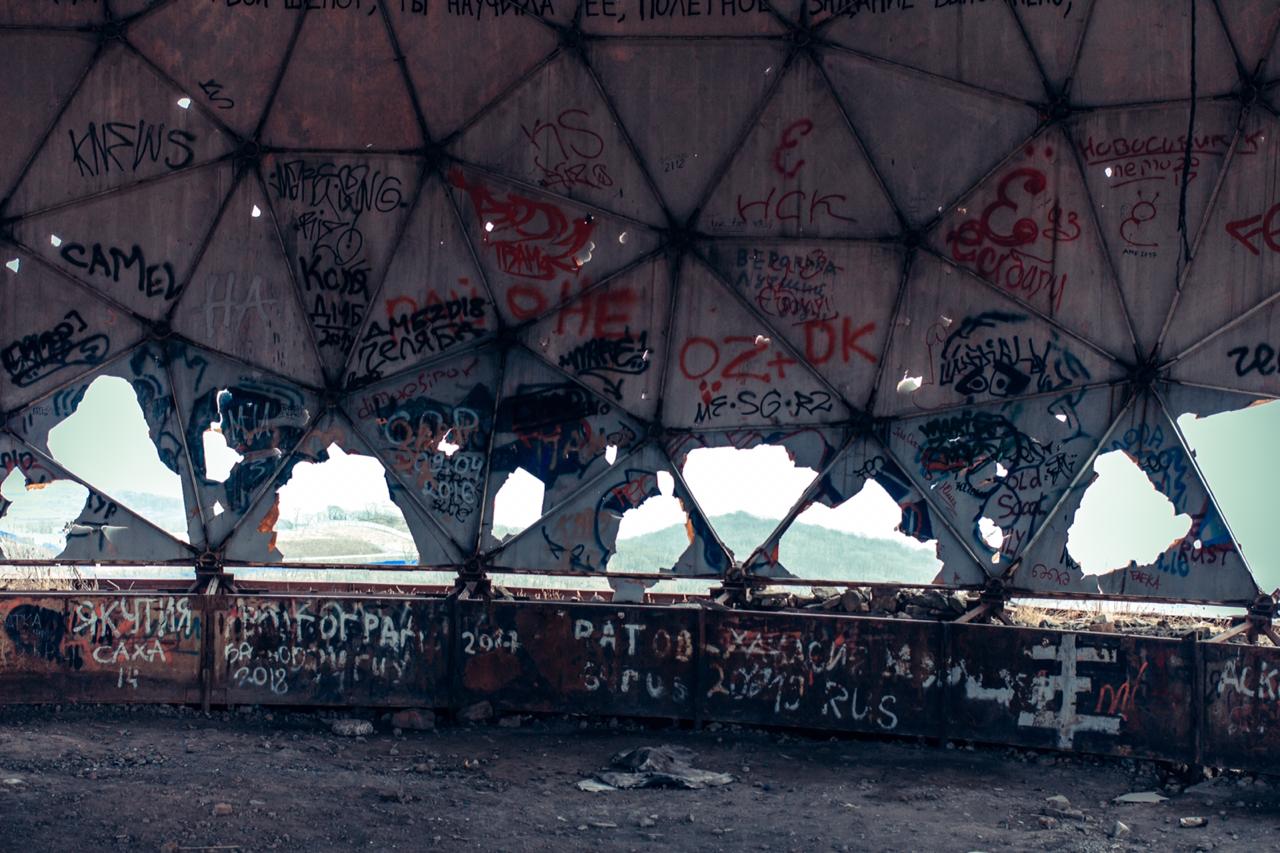 Сегодня сам шар и всё, что вокруг него - это руины, остатки Уссурийской мортирной батареи и позиций С-125.