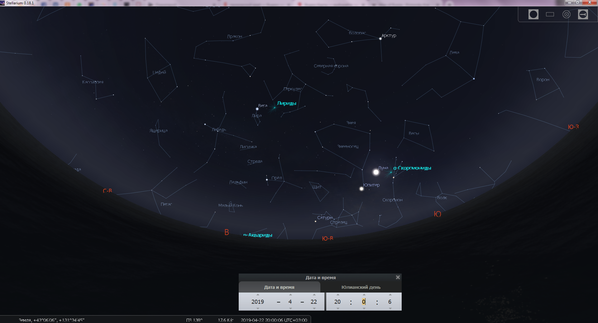 Лириды входят в «большую тройку» метеорных потоков наряду с Персеидами (август) и Геминидами (декабрь). Название происходит от созвездия Лиры, в котором находится радиант потока – точка на небе, откуда, как кажется наблюдателю, вылетают метеоры. Лира – созвездие Северного полушария. В средних широтах нашей страны оно видно круглый год. Наблюдать Лириды можно при ясной погоде всю ночь в восточной части неба с 16 по 25 апреля 2019 года. Лириды лучше всего наблюдать до полуночи, так как в ночь максимума, с 22 на 23 апреля, наблюдениям метеоров помешает полная Луна, которая взойдет после полуночи и будет засвечивать небо, не позволяя увидеть более слабые метеоры.