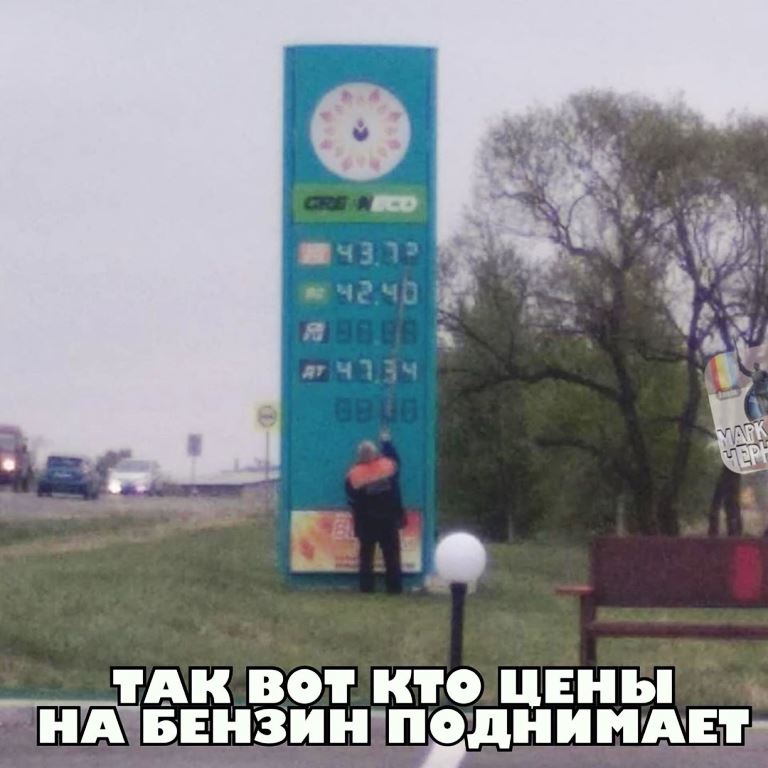 На снимке запечатлено, как мужчина меняет ценник на стенде АЗС. Комментаторы не без юмора подключились к обсуждению: