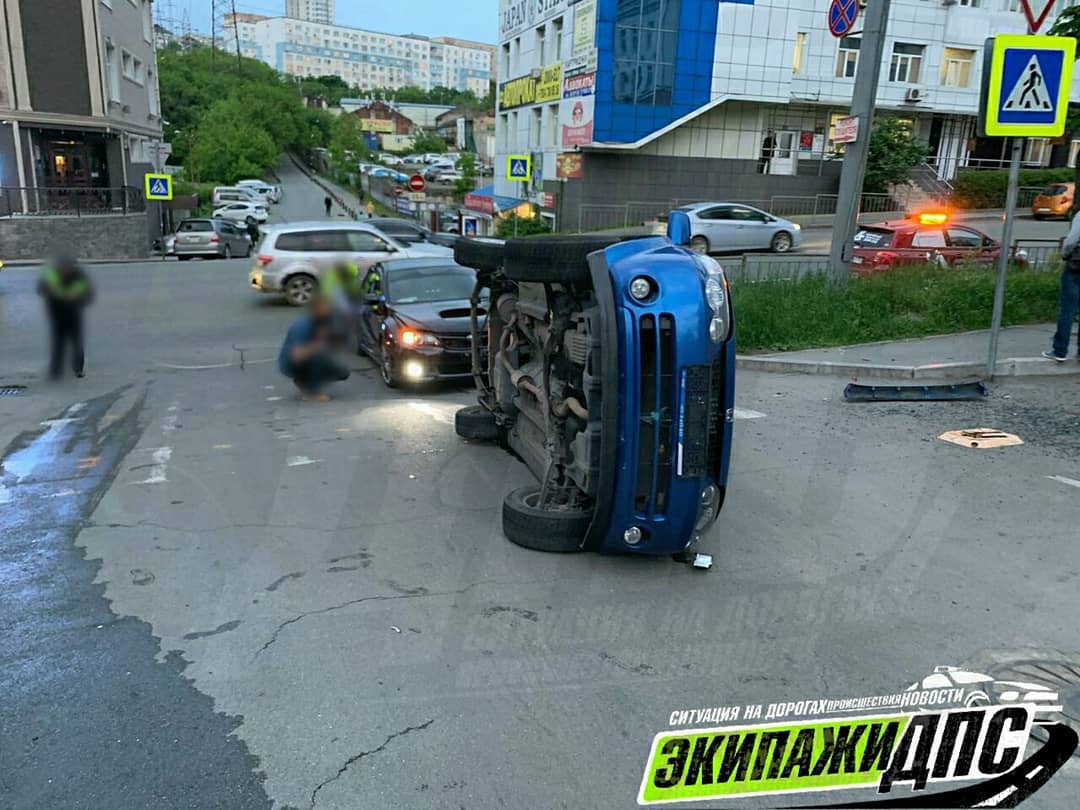 Во Владивостоке в дорожно-транспортном происшествии автомобиль перевернулся на бок, сообщает РИА VladNews со ссылкой на группу «Экипажи ДПС» в социальной сети Инстаграм.