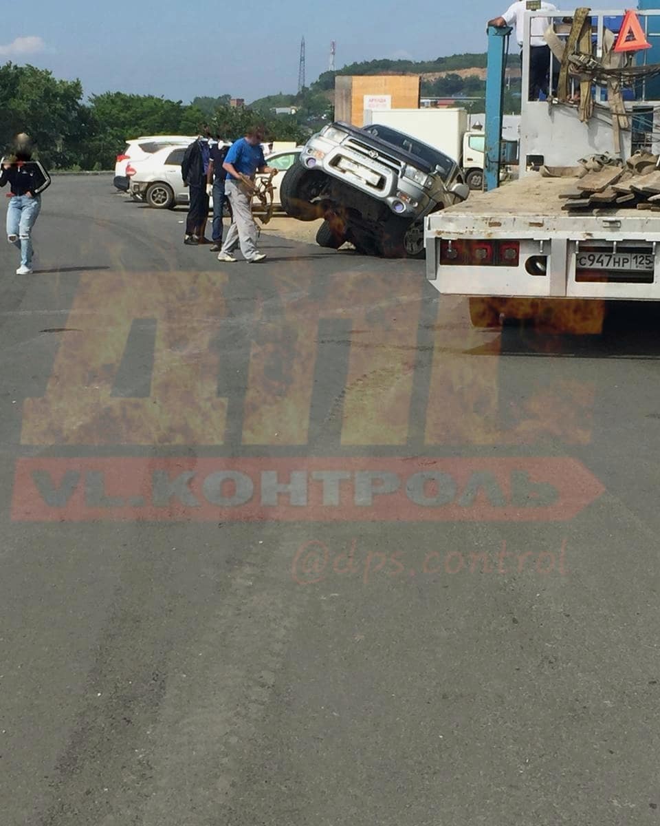 Во Владивостоке внедорожник провалился в канаву, сообщает РИА VladNews со ссылкой на dps.control.