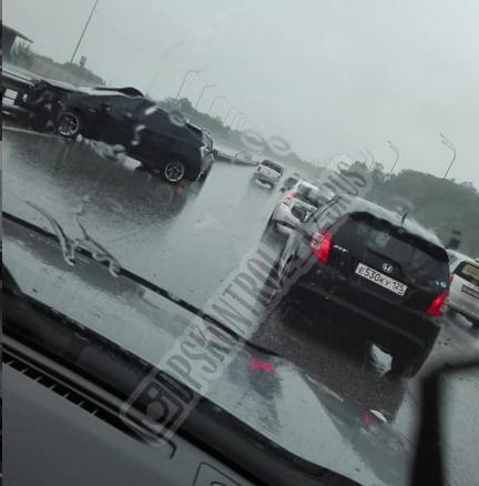 ДТП произошло недалеко от Фетисов-арены, в условиях скользкой дороги (по свидетельствам очевидцев, на месте аварии - большая лужа).