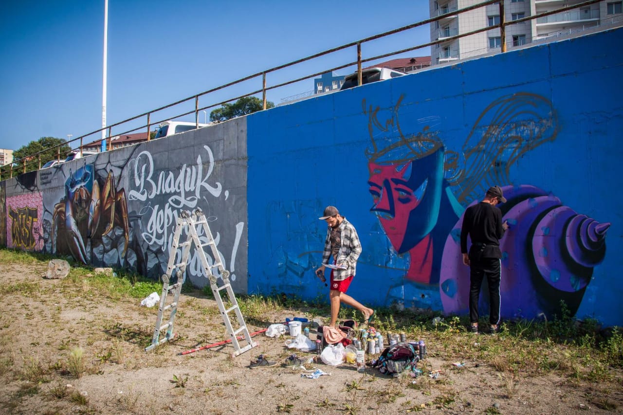 И совсем недавно Владивосток разрисовали иностранные художники. Они творили свои произведения искусства на стенах в рамках V-ROX EXPO.