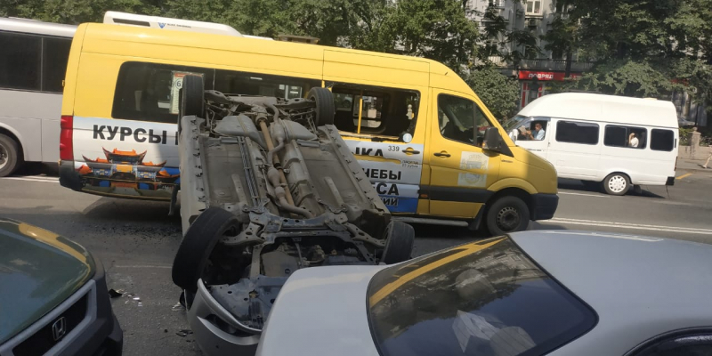 Полиция проверяет аварию, в результате которой во Владивостоке легковой автомобиль перевернулся и упал на маршрутный автобус, сообщает РИА VladNews со ссылкой на пресс-службу ОГИБДД УМВД России по Владивостоку.