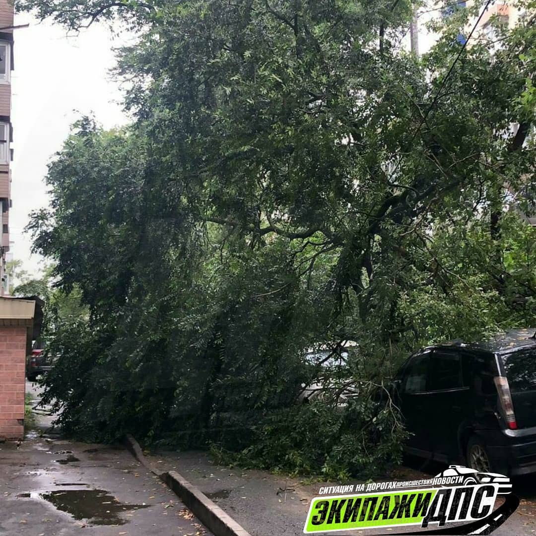 Во Владивостоке огромное дерево упало на припаркованные автомобили, сообщает РИА VladNews со ссылкой на dps_vl.