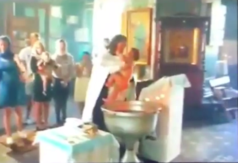 На видео, который разместили на странице в Instagram dps_vl, видно, как ребенка несколько раз силой окунают в купель. При этом служитель не обращает внимания на крики ребенка и матери, которая пытается спасти своего малыша.