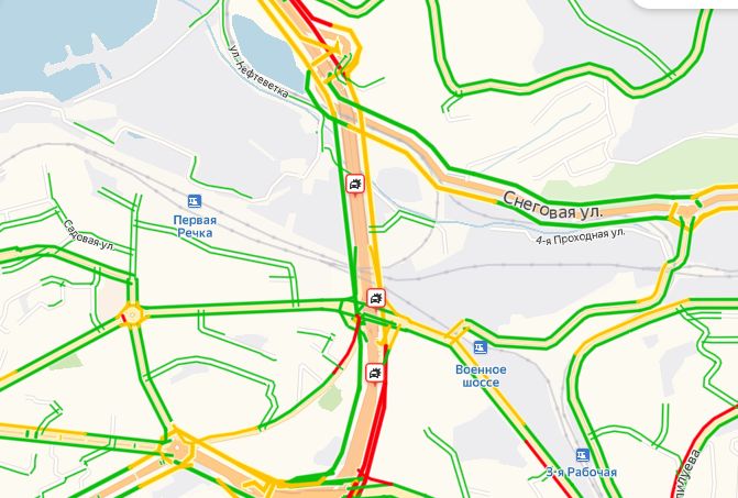 Сильный затор наблюдается от Чуркина вдоль Золотого моста и продолжается до Второй Речки.