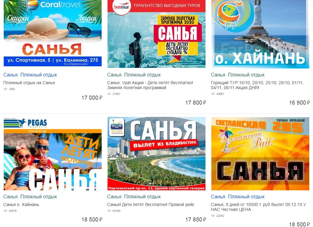 Популярный в Приморье интернет-сервис пестрит объявлениями о горящих турах в Санью за «смешные деньги» - от 16 до 20 тысяч рублей за 7 дней отдыха. Плюс действует акция «дети летят бесплатно», которая привлекает многих приморцев.
