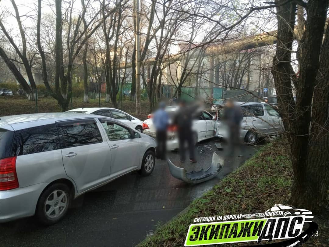Во Владивостоке произошло серьёзное массовое ДТП с участием двух седанов и одного универсала, сообщает РИА VladNews со ссылкой на dps_vl.