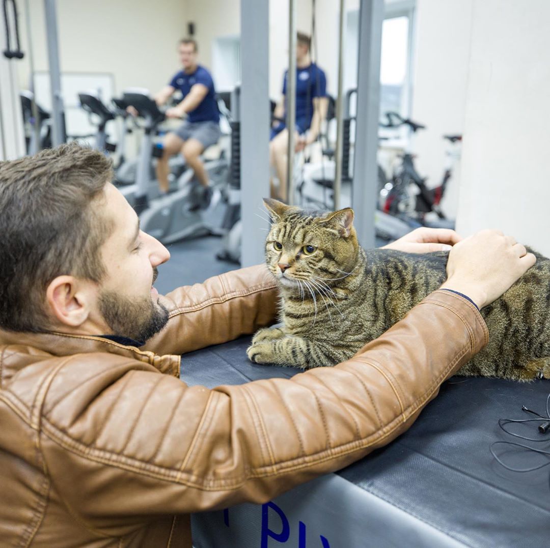 Ставший звездой на весь мир толстый кот Виктор вместе со своим хозяином посетил тренировку в хоккейном клубе «Адмирал» которую провел тренер Николай Пронин, сообщает РИА VladNews.