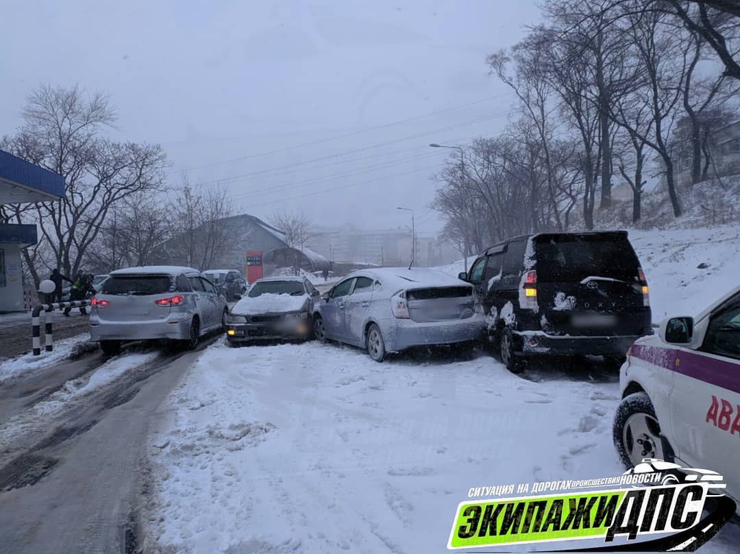 Во Владивостоке произошло массовое ДТП в районе улицы Коммунаров, 25, сообщает РИА VladNews со ссылкой на dps_vl.