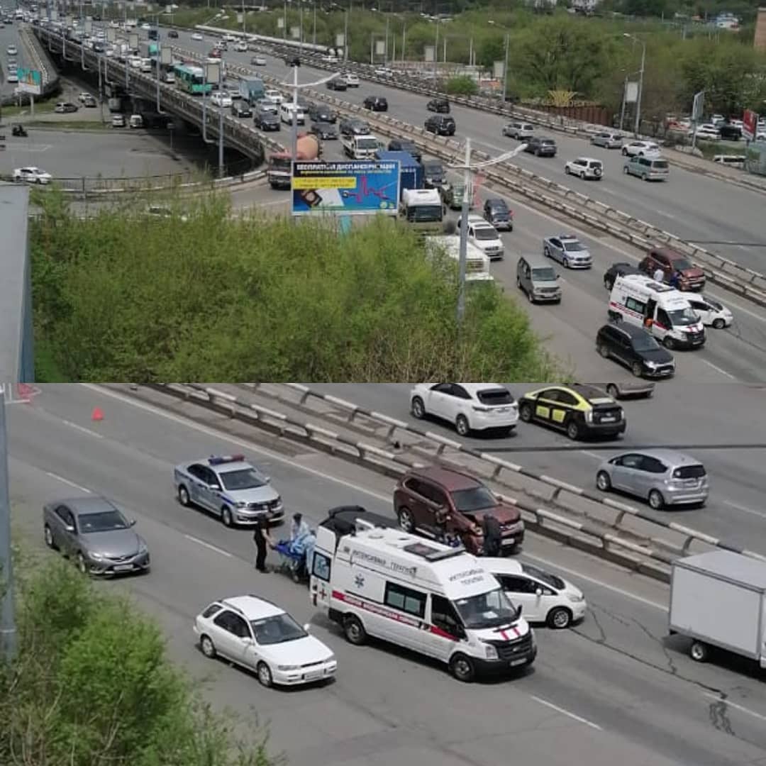 Во Владивостоке произошло жёсткое ДТП на Некрасовском путепроводе в сторону центра, сообщает РИА VladNews со ссылкой на dpskontrol125rus.