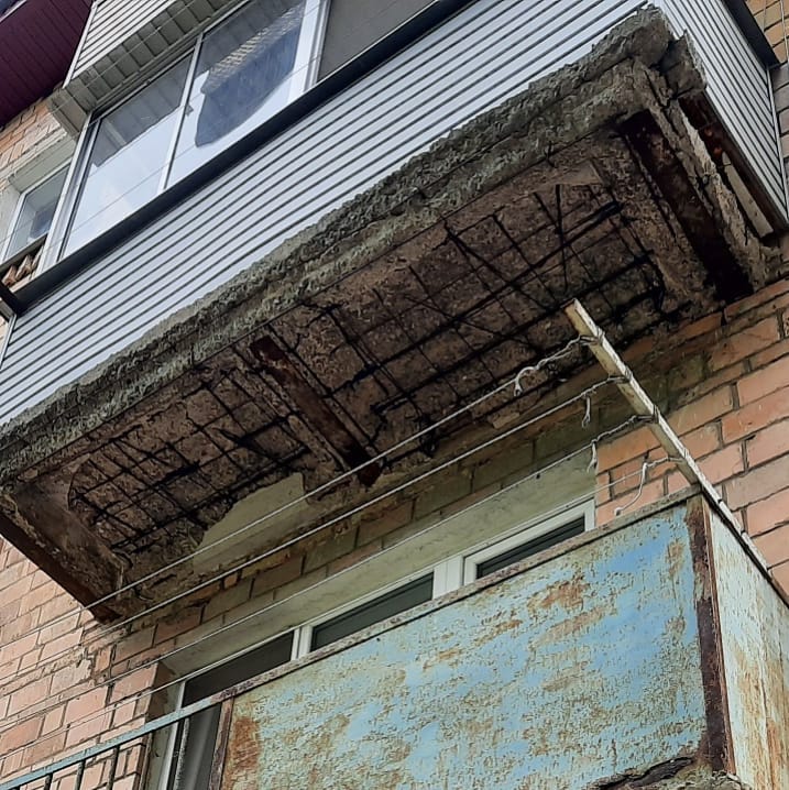 Как оказалось, всё дело в том, что балконы в доме представляют реальную опасность для граждан. Так, с этих сооружений обваливается бетон, и граждане уже отчётливо видят арматуру.